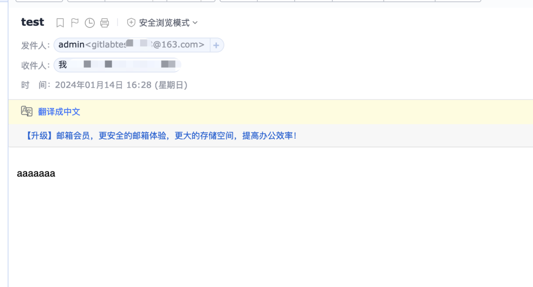 测试向外发送一封电子邮件,看邮件功能是否正常