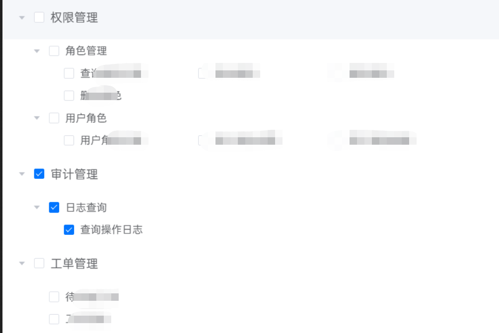 使用企业超级管理员创建一个角色,拥有与企业管理员相同的功能,并添加一个用户称为test赋予其刚创建的角色,使用test正常登录。使用另一个浏览器登录企业超级管理员的账号,修改test账号的角色的权限,修改为最小权限,如第一张图所示,仅可查看日志信息。