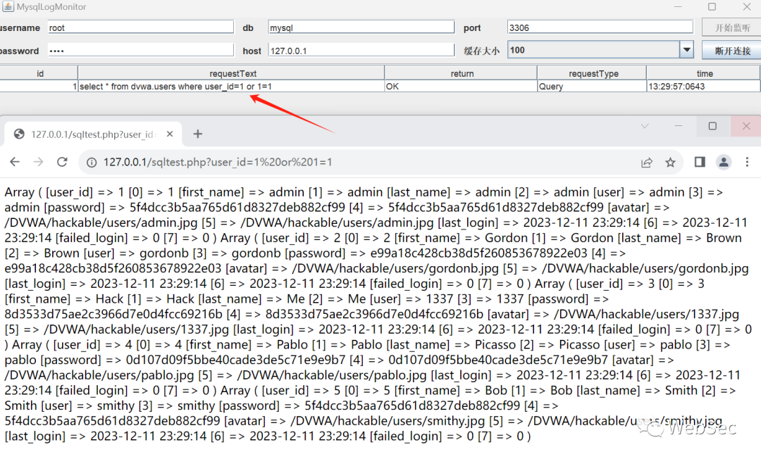 SQL语句为---select * from dvwa.users where user_id=1 or 1=1