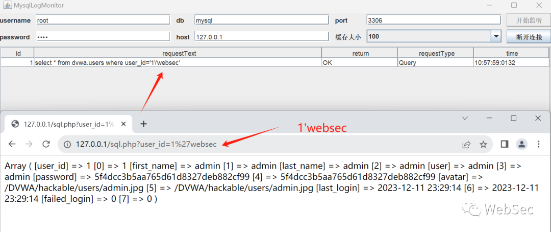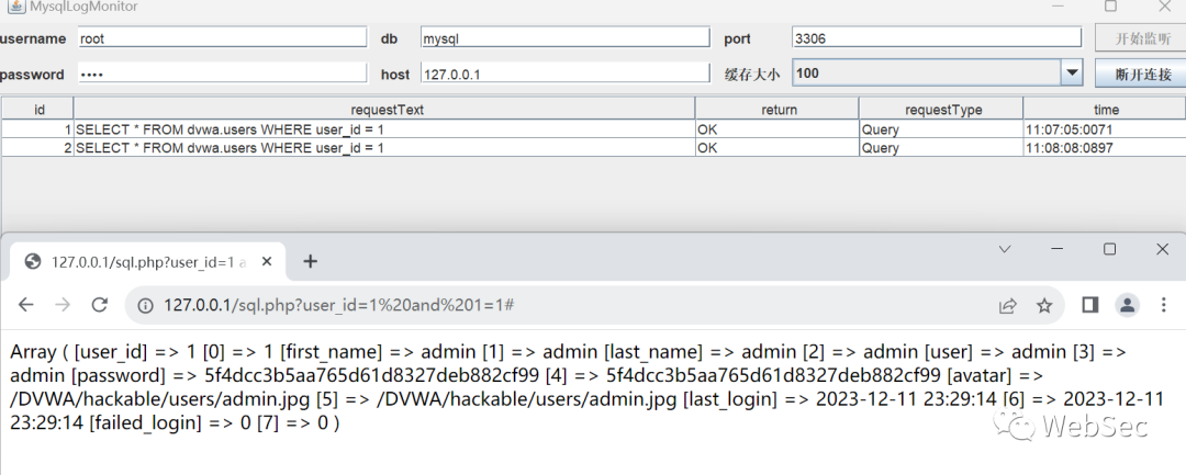 之后则是核对密码,密码核对成功则开始执行sql语句