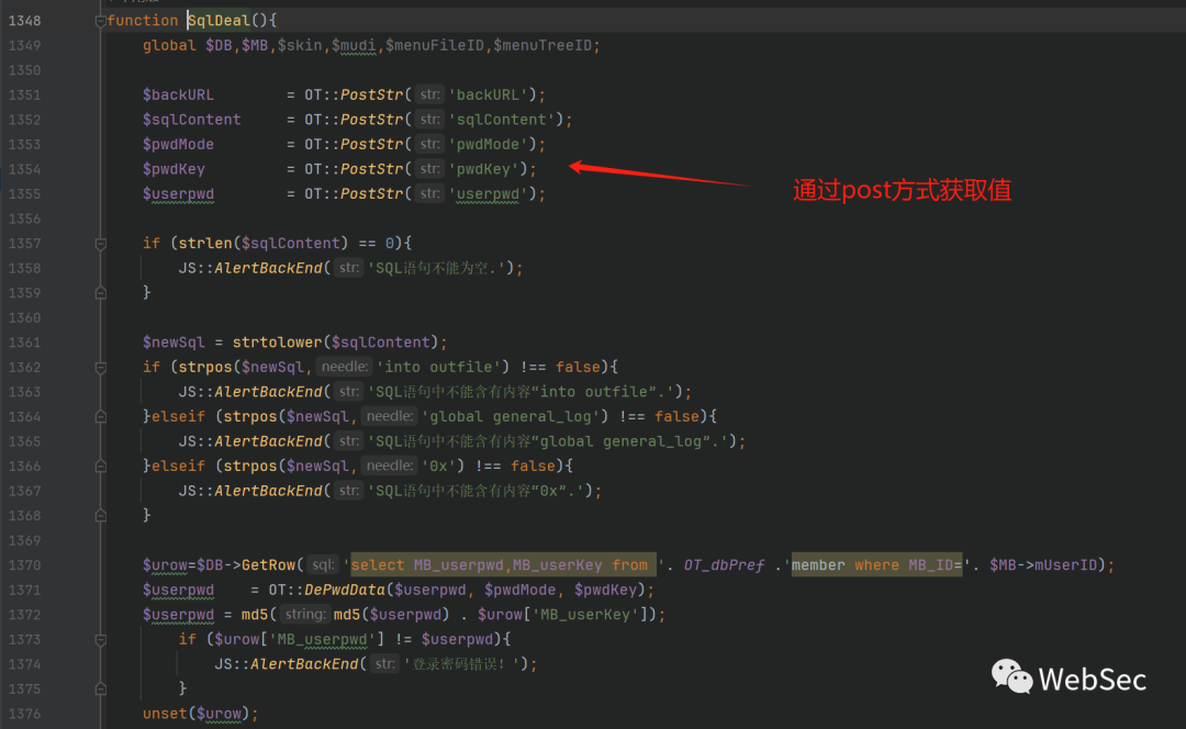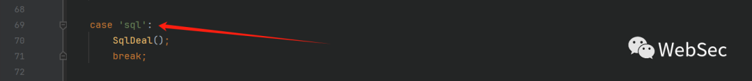 其中,swith是一个控制变量,当mudi的值为sql时,执行SqlDeal函数