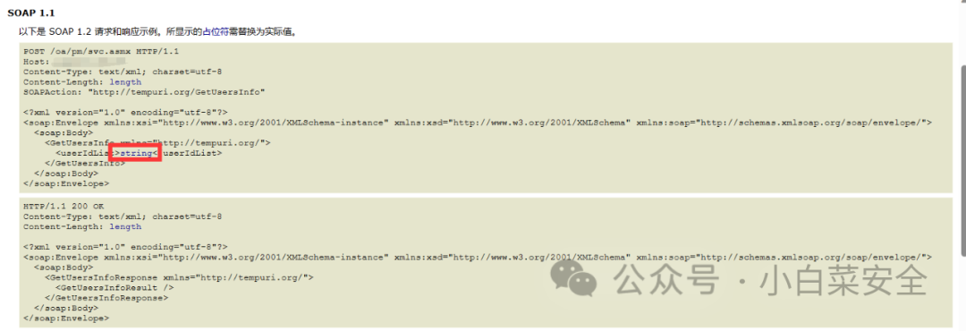 访问url+/oa/pm/svc.asmx?op=GetUsersInfo出现如下数据包代表漏洞存在,可直接放入sqlmap测试