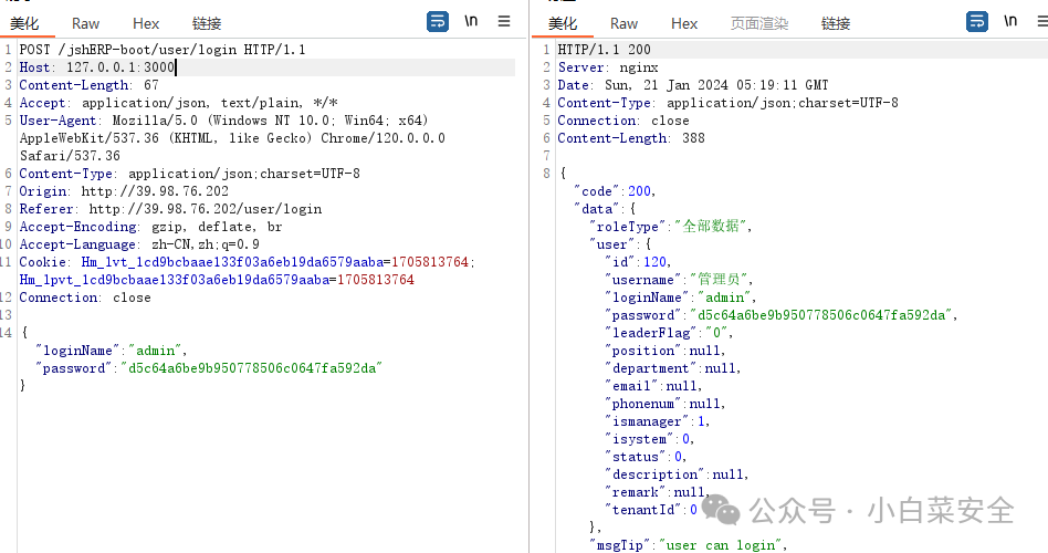 2.获取密码为md5值,也可抓取登录数据包替换md5值登录系统