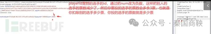 修改playerIdwei为别人的,因为用自己的playerid,自己的票数为变为-负数,修改num数为负数,如-9999,因为num参数可控,这时候你的票数会多出9999票,别人会少9999票,打个比方如图: