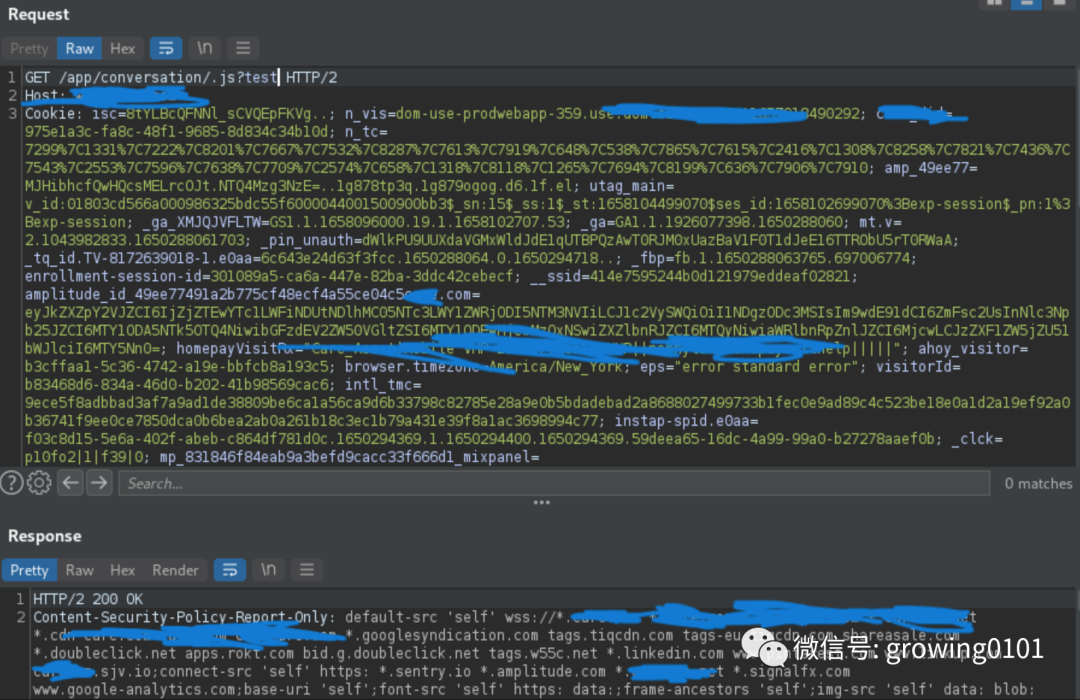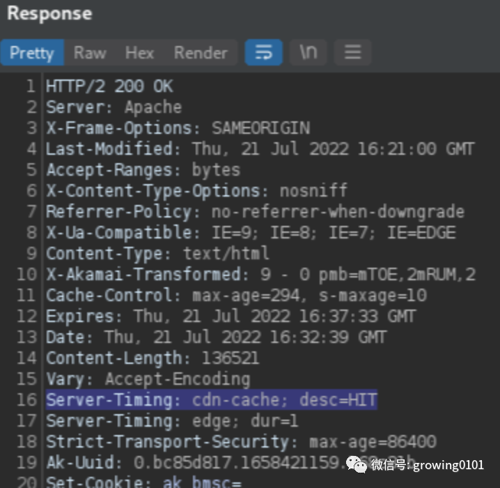 • 在URL的末尾添加一个能缓存的扩展名(.js,.css),看看它是否给出了一个200 OK的响应 (注意看接口的末尾,多了.js,可以与第一张图进行对比)
