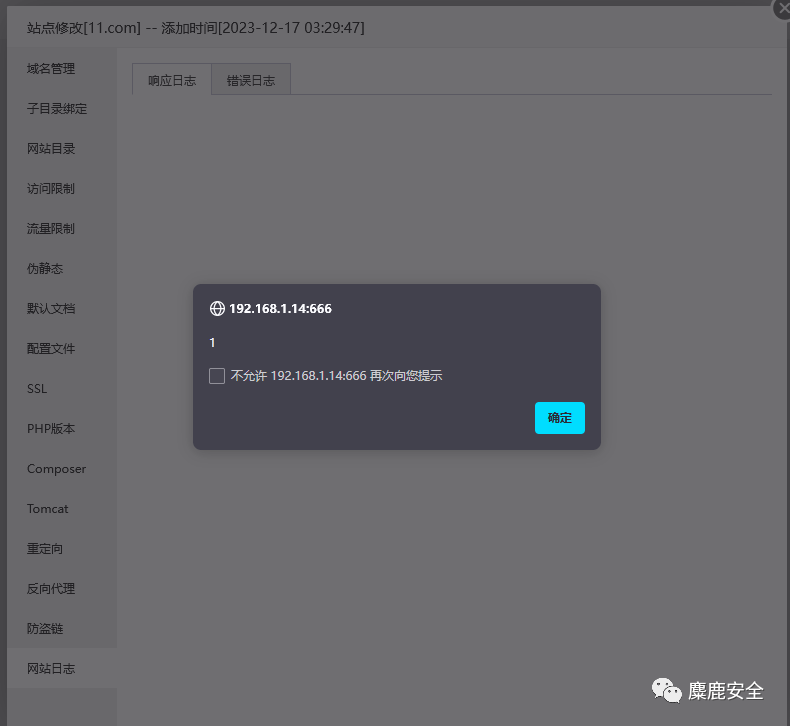 宝塔会记录网站nginx日志,后台查看日志的地方可以XSS