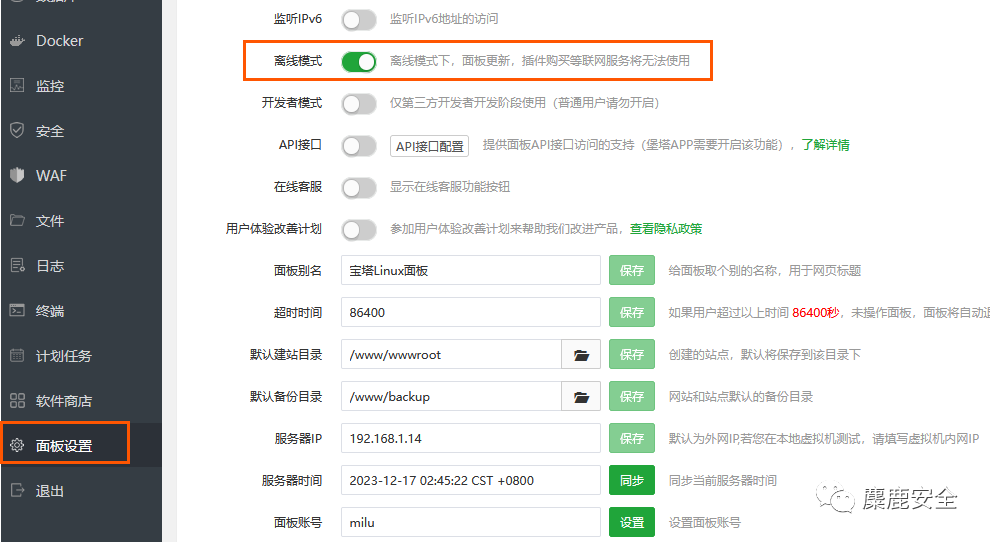 宝塔会自动升级,搭个环境还是有点浪费时间的,这里我推荐Timeline Sec团队Sky师傅制作的靶场(记得登录上去第一时间关闭宝塔的自动更新)