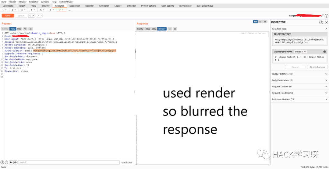 虽然我擅长手动 SQL 注入利用,但有一种 base64 编码的实时模式,并在转发器中应用有效负载。为此,我试图找到目标的列数。