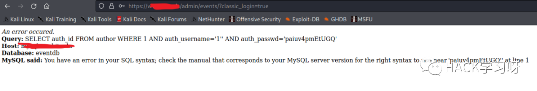 它弹出用户名和密码,我开始提供错误的凭据并观察服务器的响应,测试了一段时间后,我提供的用户名和密码为1′
