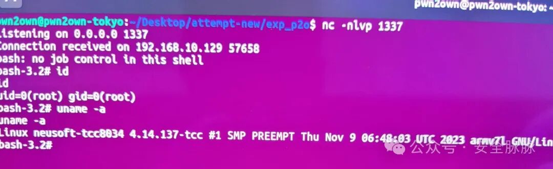 成功 – NCC Group EDG 团队对 Pioneer DMH-WT7600NEX 执行了一个包含 3 个漏洞的攻击链。他们赚取了 40,000 美元和 4 个 Master of Pwn 积分。