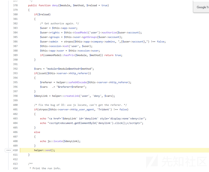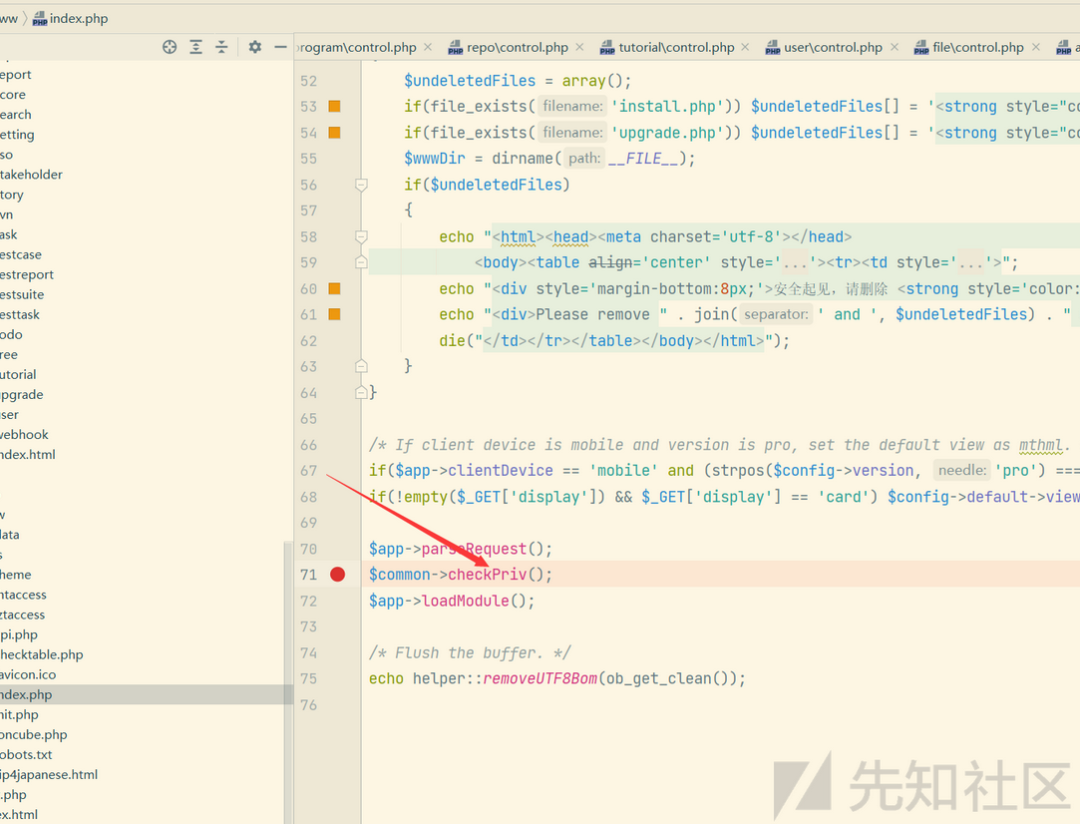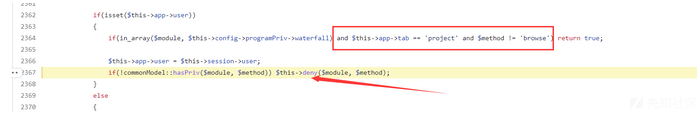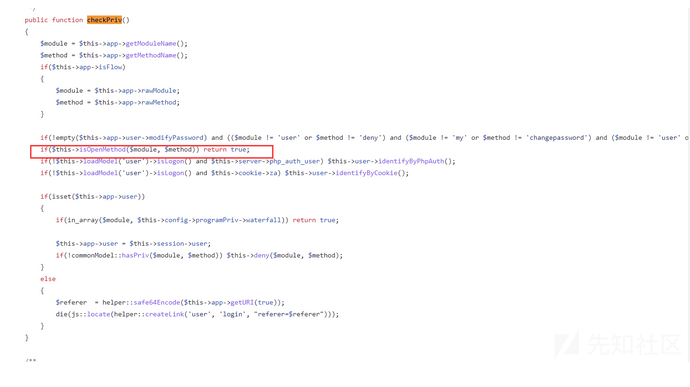 Zentao 的 框架由checkPriv 函数来检查 模块和控制器的权限的。
