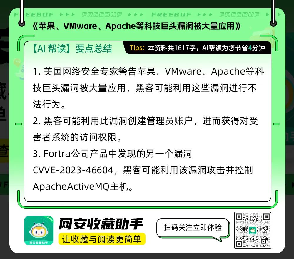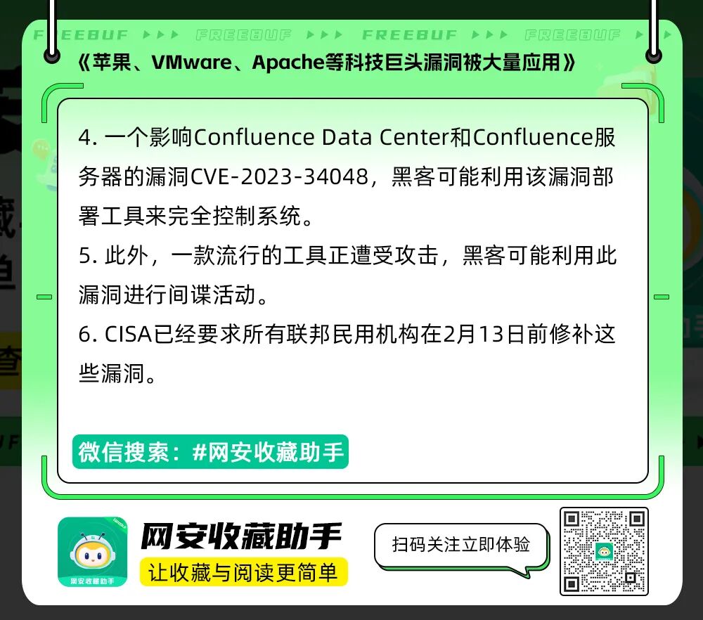 过去一周,美国网络安全专家和网络安全与基础设施安全局(CISA)等政府机构已经关注到了影响苹果、VMware、Atlassian、Fortra、Apache等科技巨头的漏洞。
