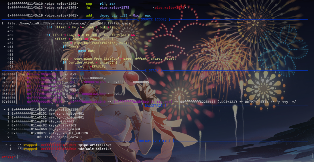 同样使用上述 EXP,等到执行splice(fd,NULL,pipefd[1],NULL,1,0)。