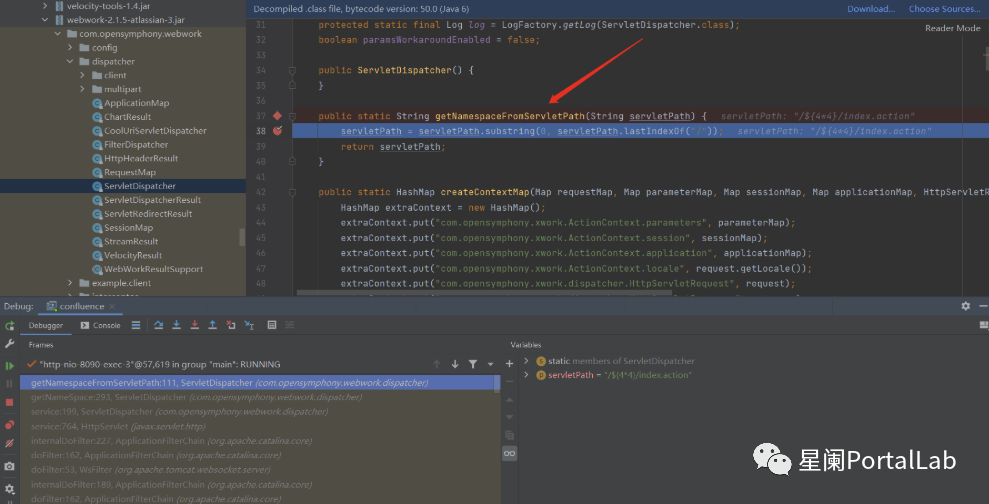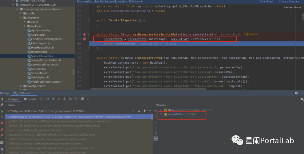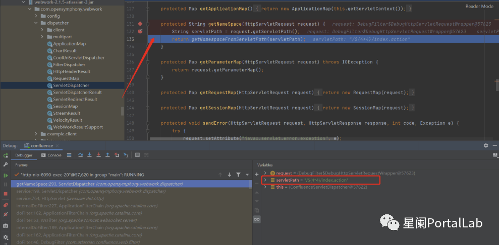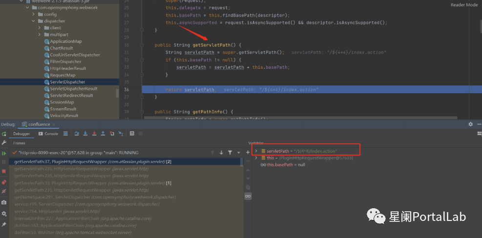 通过调用com.atlassian.plugin.servlet.PluginHttpRequertWrapper#getServletPath函数,获取了请求servletPath的值。