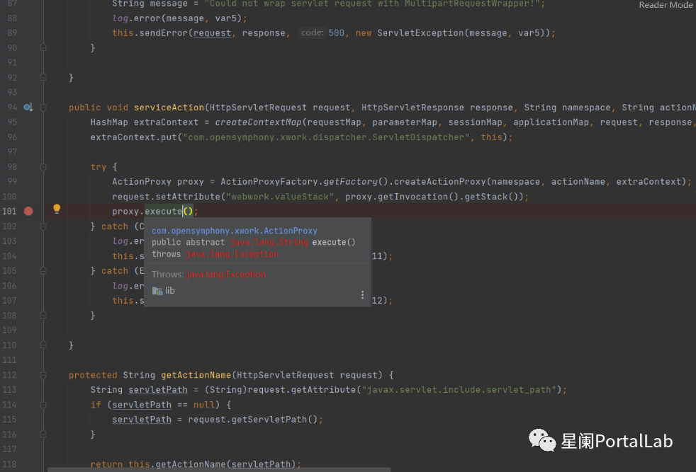 根据com.opensymphony.webwork.dispatcher.ServletDispatcher#serviceAction函数。