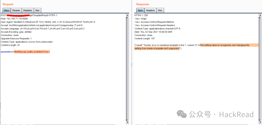 Freemarker支持一个内置函数:?api,通过它可以访问底层Java Api Freemarker的 BeanWrappers 。可以尝试通过 Class.getResource 的返回值来访问对象 URI ,该对象包含方法 toURL 。因为URI提供静态方法 create ,通过该方法可以创建任意 URI ,然后用 toURL 将其返回至 URI ,可以尝试窃取系统的任意文件。