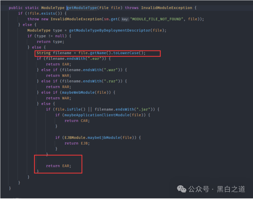 主要是判断后缀名,当上传zip等压缩文件时默认是EAR。
