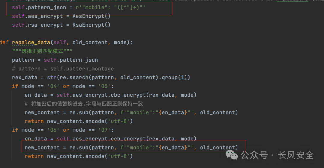 mode=05 ->部分字段加密,需改正则匹配需要加密的字段,AES CBC模式,十六进制格式,大写