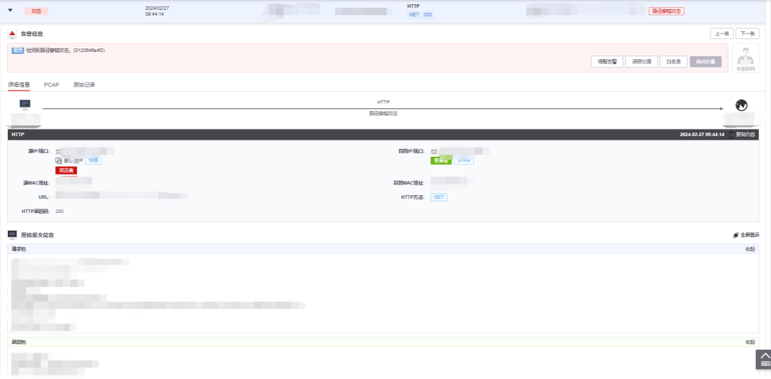 使用防护类设备进行防护,拦截../../等路径穿越字符