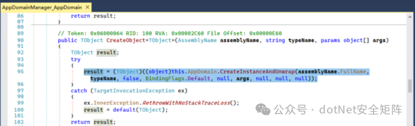 CreateObject方法的定义,发现是定义在IAppDomainManager 接口中,AppDomainManager_AppDomain类实现了IAppDomainManager 接口,也重写了CreateObject方法,如图所示。