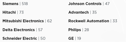 新增漏洞最多的OT厂商TOP10: