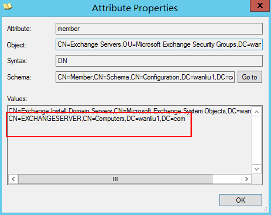 里的内容则在 CN=Microsoft Exchange,CN=Services,CN=Configuration,DC=test,DC=com