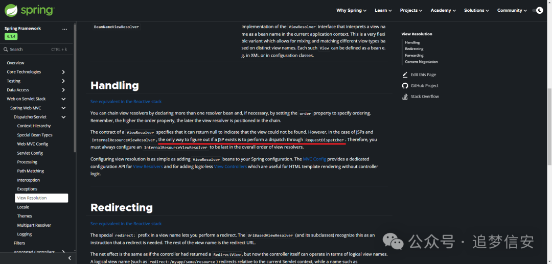 官网里面讲的很清楚,内部资源视图解析器InternalResourceViewResolver会将视图名称viewName解析为JSP文件的路径,并将其包装在一个RequestDispatcher对象中,然后将请求发送到该RequestDispatcher,从而执行JSP的渲染过程;比如我们之前所看到的404.jsp解析成404.html: