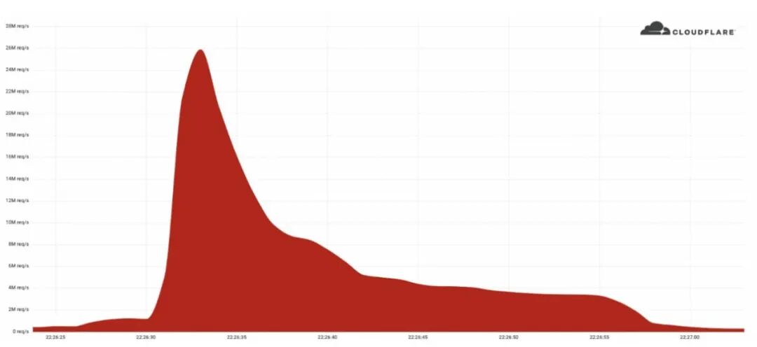 Cloudflare 报告称,本月停止了破纪录的HTTPS DDoS 攻击(分布式拒绝服务攻击)。该公司声称这次攻击的峰值为每秒2600万次请求 (RPS),使其成为有史以来规模较大的HTTPS DDoS洪水记录。