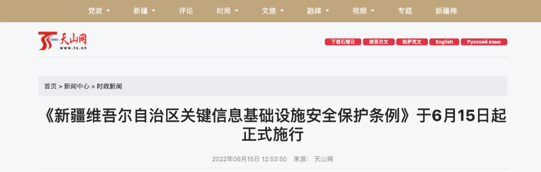 6、《新疆维吾尔自治区关键信息基础设施安全保护条例》6月15日正式施行
