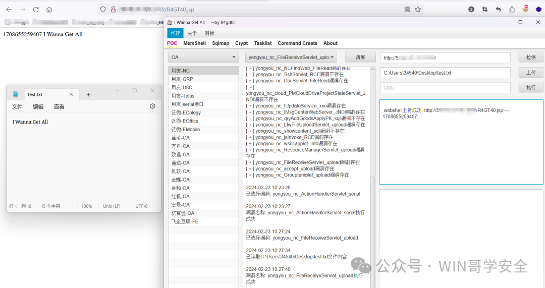 用友NC文件上传(选择OA类型 — 选择漏洞 — 输入URL — 上传文件 — 执行)