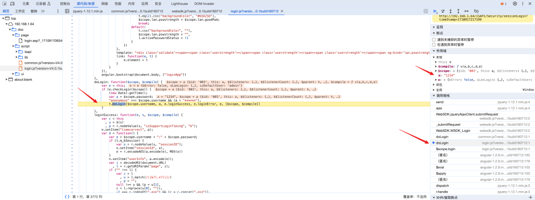 可以看到在这个 doLogin 处出现了我们的明文密码 1234 ,我们在此添加断点