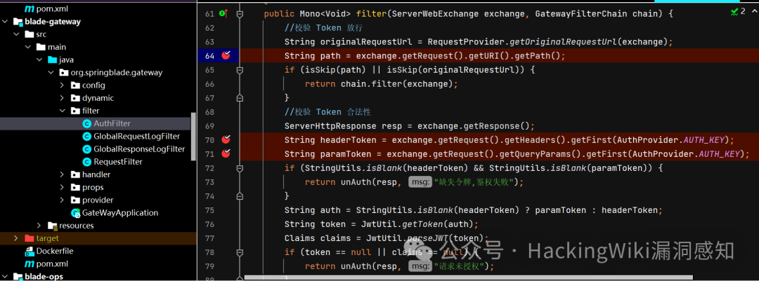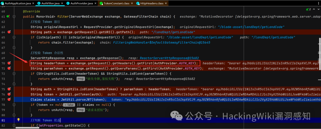 所以headerToken值为读取请求体中的Blade-Auth请求头