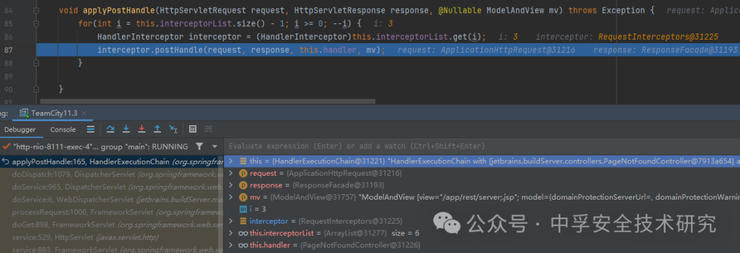 开启调试,在 RequestInterceptors.preHandle() 断点开始,