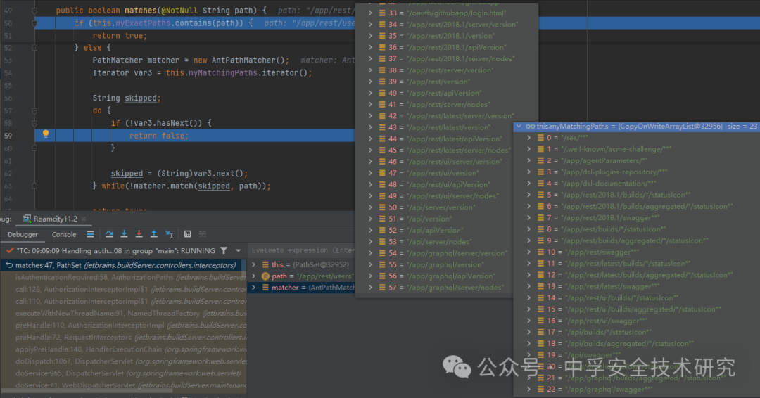 ,当进入 AuthorizationInterceptorImpl 时会进行遍历匹配;