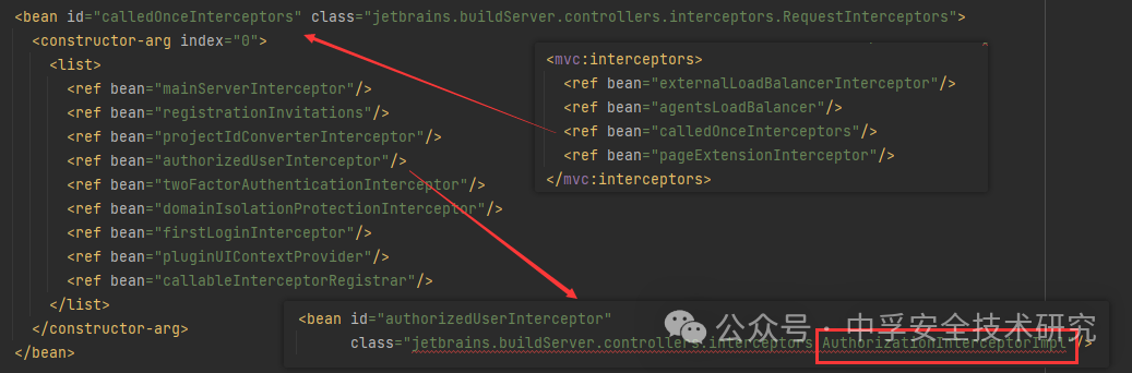 声明了 MVC 用到的拦截器,其中 AuthorizationInterceptorImpl 是进行身份校验的拦截器。