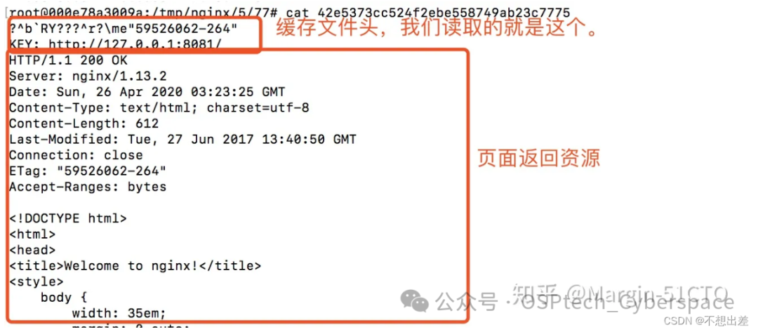 Nginx越界读取缓存漏洞产生的原因是Nginx读取http请求时,如果包含range,那么Nginx会根据range指定的数据范围读取文件数据内容,如果该range是负数,并且读到了缓存文件,那么会返回缓存文件中的“文件头”或“HTTP返回包头”,缓存文件头可能包含IP地址的后端服务器或其他敏感信息,从而导致信息泄露。