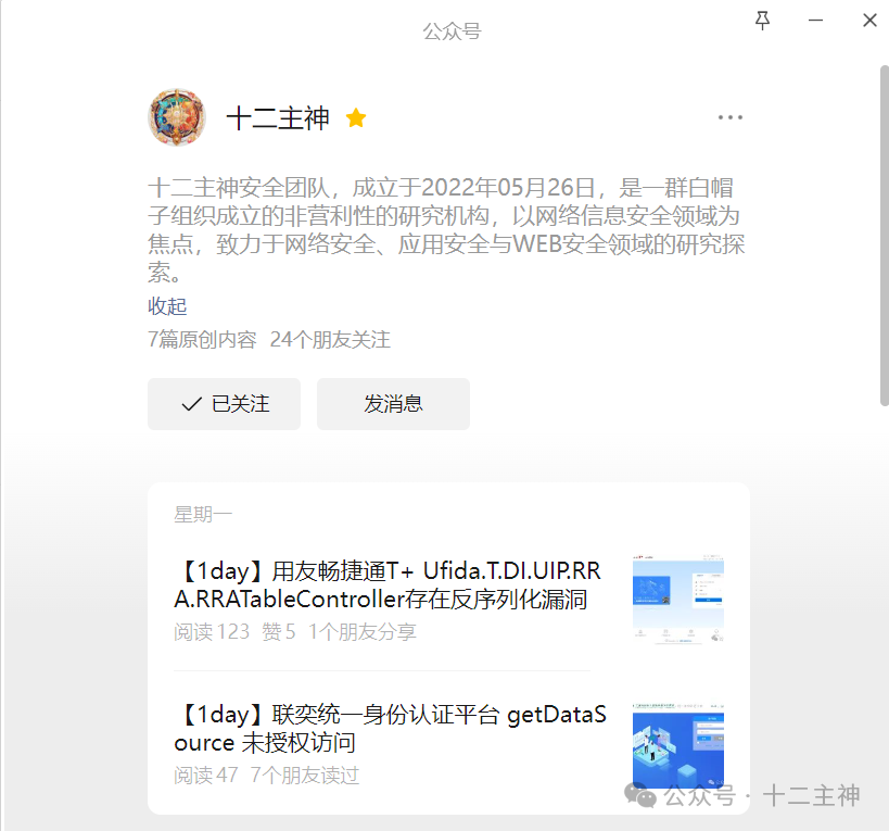 免责声明: 本文章仅做网络安全技术研究使用!严禁用于非法犯罪行为,请严格遵守国家法律法规;请勿利用文章内的相关技术从事非法测试,如因此产生的一切不良后果与文章作者和本公众号无关。使用本文所提供的信息或工具即视为同意本免责声明,并承诺遵守相关法律法规和道德规范。公众号发表的一切文章如有侵权烦请私信联系告知,我们会立即删除并对您表达最诚挚的歉意!感谢您的理解! |