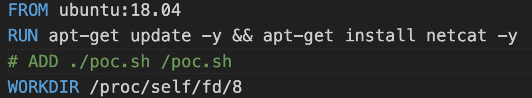 步骤1:首先根据下面的脚本确定本机上泄露的文件描述符(通常是7或者8,对应在Dockerfile中指定WORKDIR,或者也可以在docker run命令中指定)