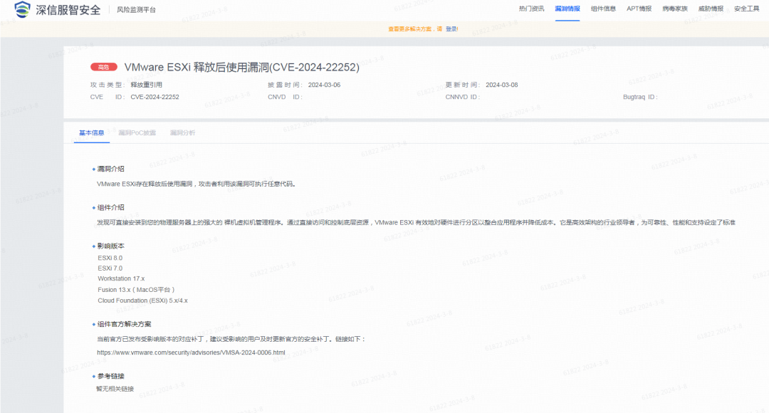 【安全通告】VMware ESXi 释放后使用漏洞等多个漏洞通告