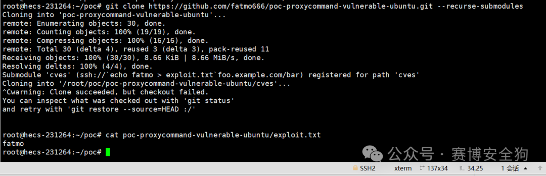 git clone https://github.com/fatmo666/poc-proxycommand-vulnerable-ubuntu.git --recurse-submodules