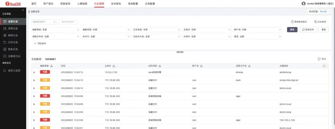 0day和内存马只是OneEDR展现的一部分能力,实际上,作为一款主机入侵检测与响应平台,OneEDR远不止如此,比如: