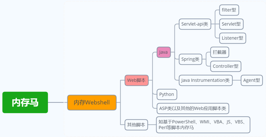 内存Webshell的分类,其中Java类无文件攻击是最主流使用的方式