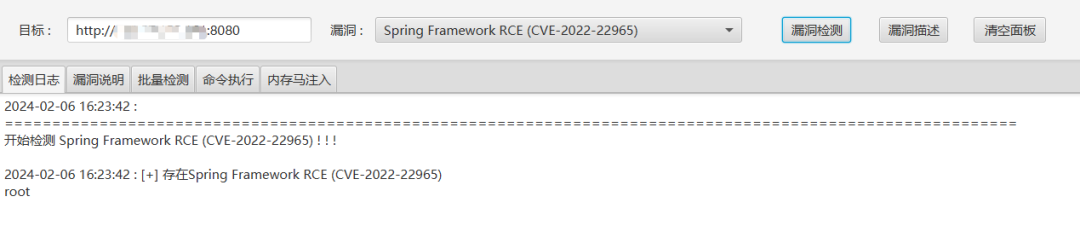 工具支持单个漏洞单个目标检测,也支持多个目标检测