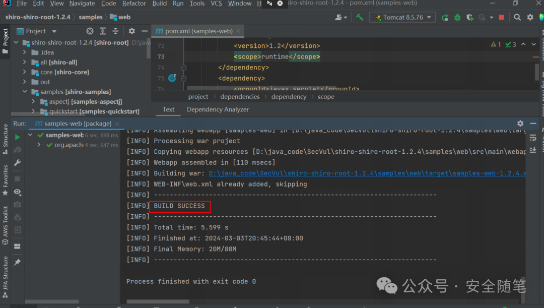 ⚠️:笔者在搭建Apache Shiro官方源码项目的时候,因为看到一篇文章说Shiro1.2.4需要在