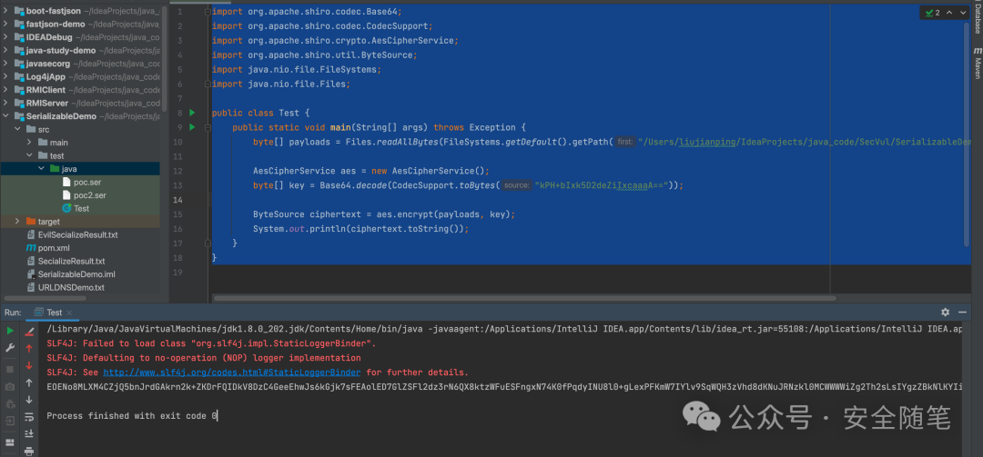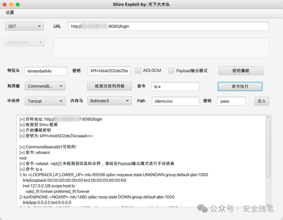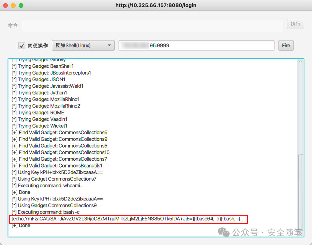 好恶意序列化数据,按照先AES加密,再Base64编码提交到Shiro服务端,Shiro就会按照上面流程就行反向解析从而最终执行readObject反序列化,达到攻击的效果。