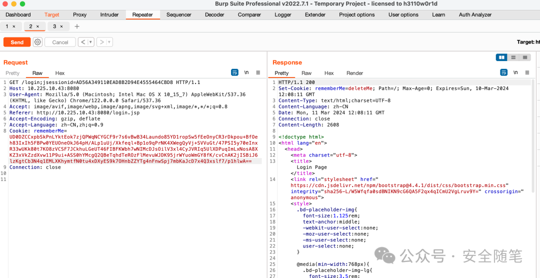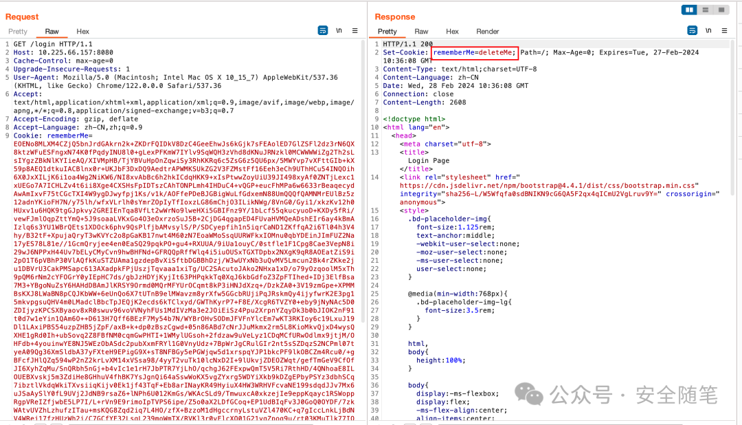 怎么触发进入断点呢,burpsuite随便发一个包,cookie中带rememberme即可: