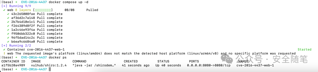 执行如下命令启动一个使用了Apache Shiro 1.2.4的Web服务: